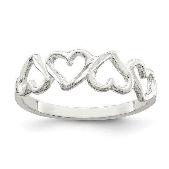 Sterling Silver Diamond Cut Heart Ring- Size 7