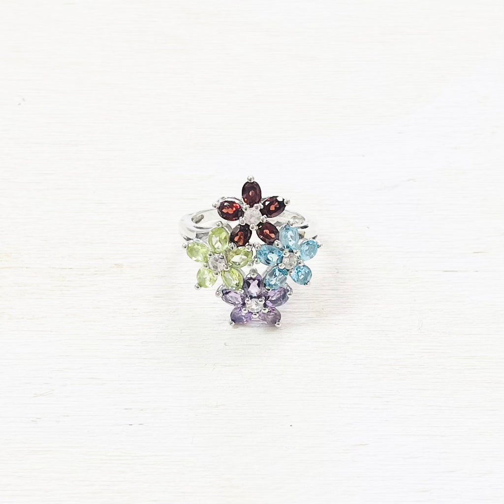 Sterling Silver Estate Multicolor Flower Ring